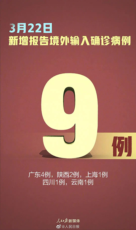 22日,新增新冠肺炎确诊病例9例,均为境外输入病例。
