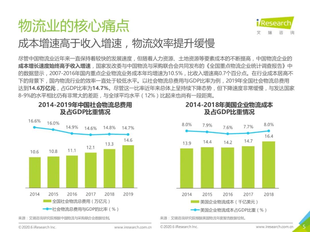 近年来,中国物流业在互联网经济的催动下发展较快,在成本不断攀升、效率提升缓慢的背景下,物流业最迫切的需求即“降本增效”。人工智能技术及相关软硬件产品的加入能够在运输、仓储、配送、客服等环节有效降低物流企业的人力成本,提高人员及设备的工作效率,是缓解物流业顽疾的一味良药。